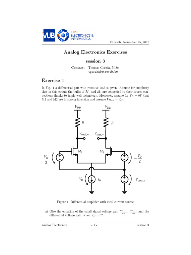 In Fig. 1 a differential pair with resistive load is given. Assume for simplicity