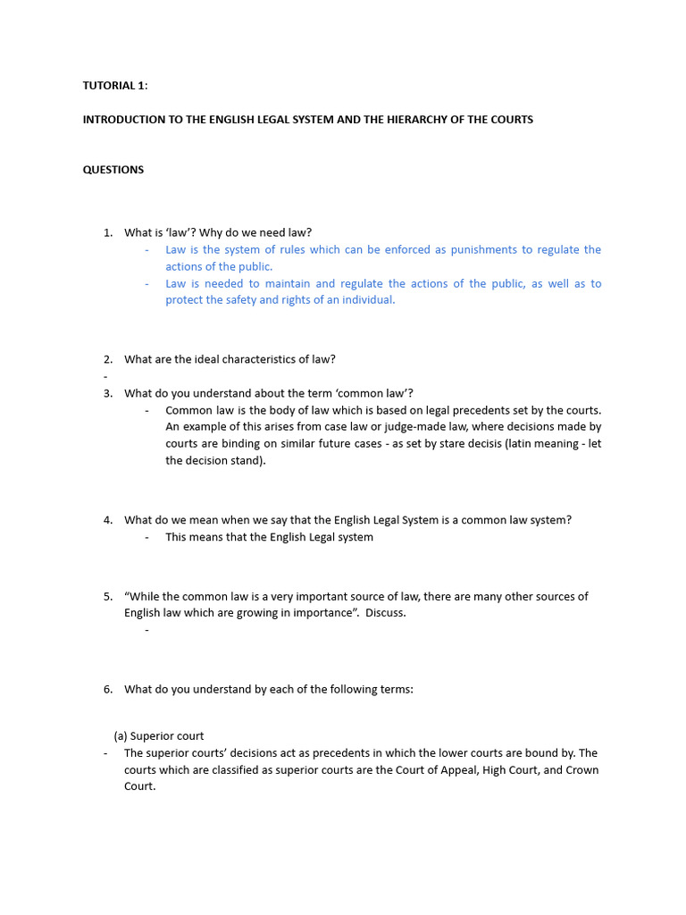4. What do we mean when we say that the English Legal System is a common law system?