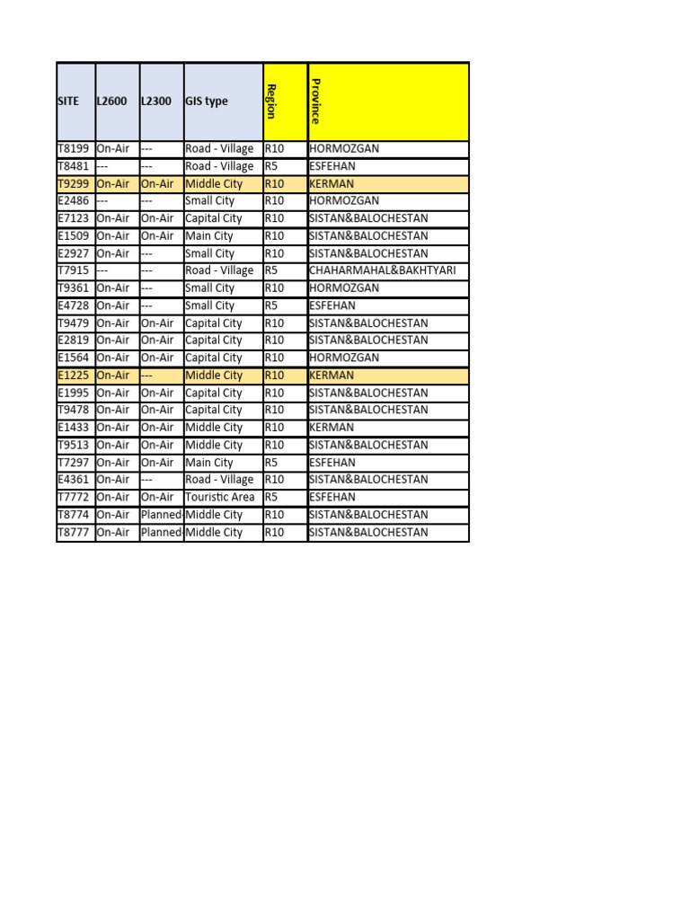 T8774 On-Air Planned-Middle City R10 SISTAN&BALOCHESTAN