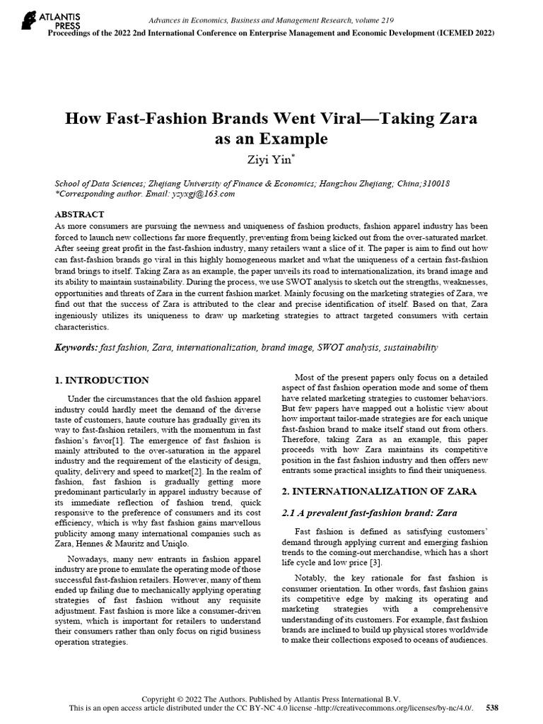 fashion’s favor[1]. The emergence of fast fashion is Therefore, taking Zara as an example, this paper