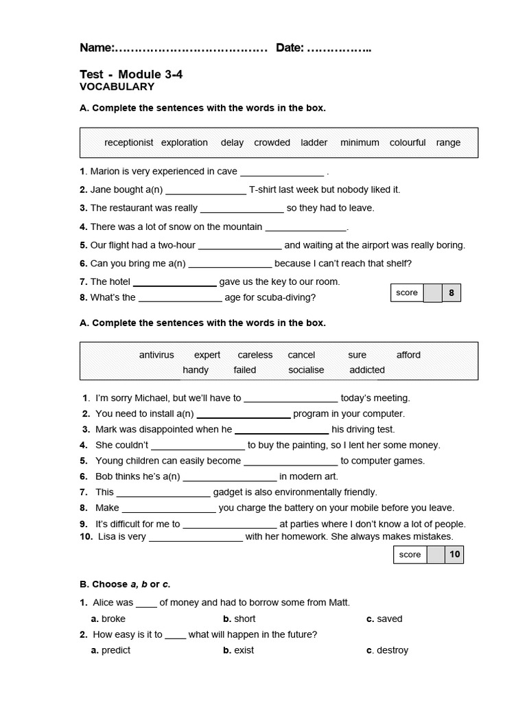 B. Complete the dialogues with the modal verbs in the boxes. score 16