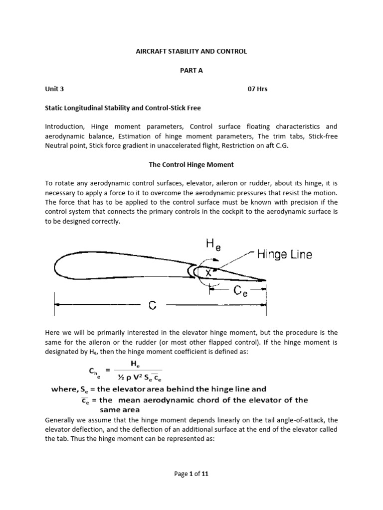 Introduction, Hinge moment parameters, Control surface floating characteristics and