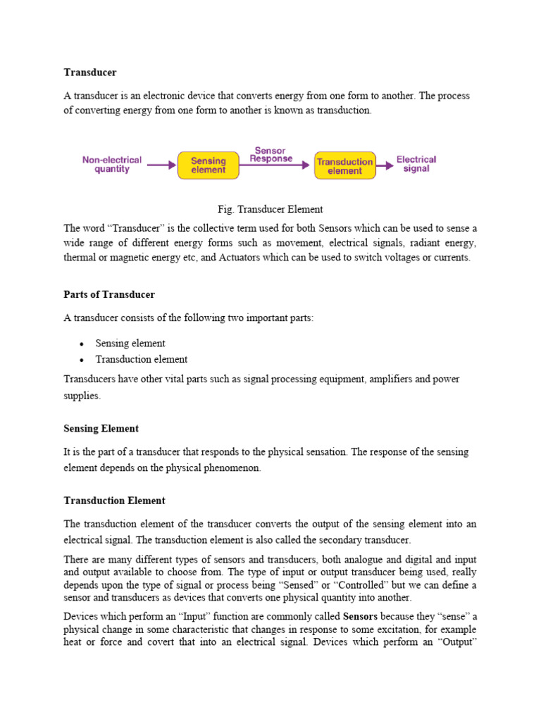 A transducer is an electronic device that converts energy from one form to another. The process