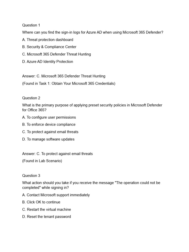 (Found in Task 2: Apply Microsoft Defender for Office 365 preset security policies)