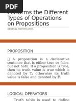 Learning Competencies: Determines the truth values of propositions (M11GM-IIh-1)