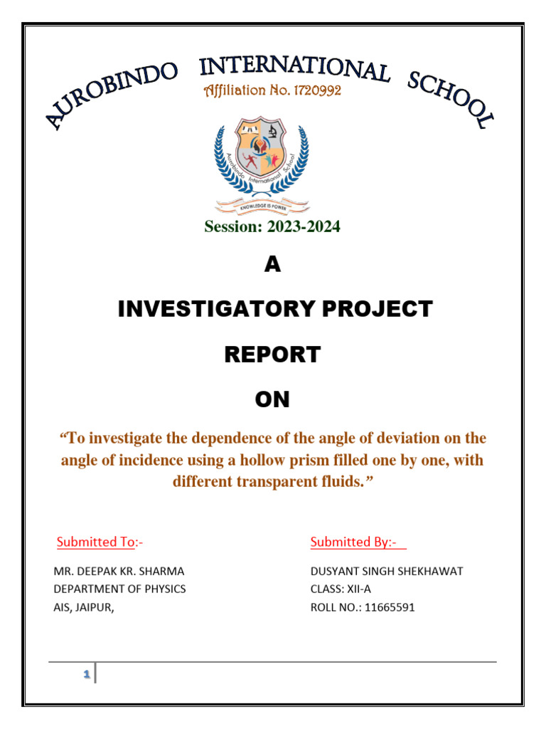 DEPARTMENT OF PHYSICS CLASS: XII-A