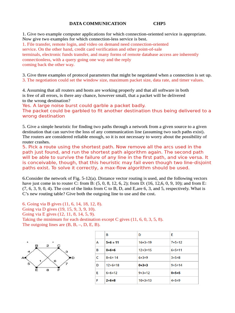 7. If costs are recorded as 8-bit numbers in a 50-router network, and distance vectors are exchanged