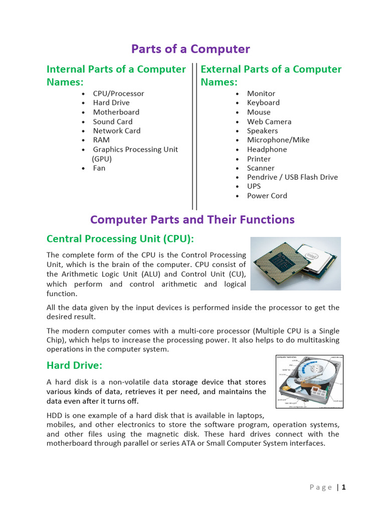 parts of the computer sizes are becoming smaller and increasing efficiency. Each part