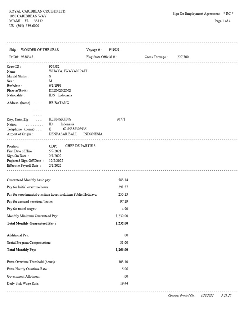 I accept the position on the ship indicated above for the date shown. I understand that if I fail to show up to join the ship on the date