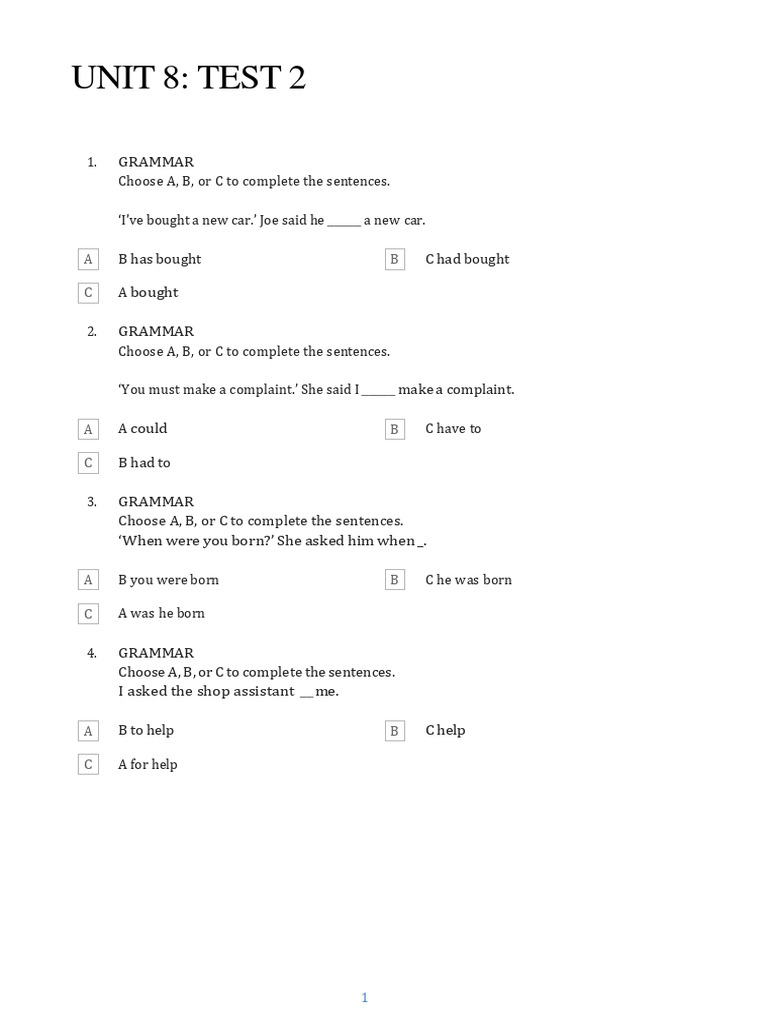 UNIT 8: TEST 2