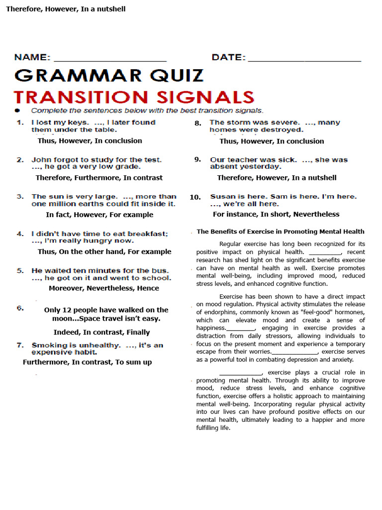 Thus, On the other hand, For example positive impact on physical health. _________, recent