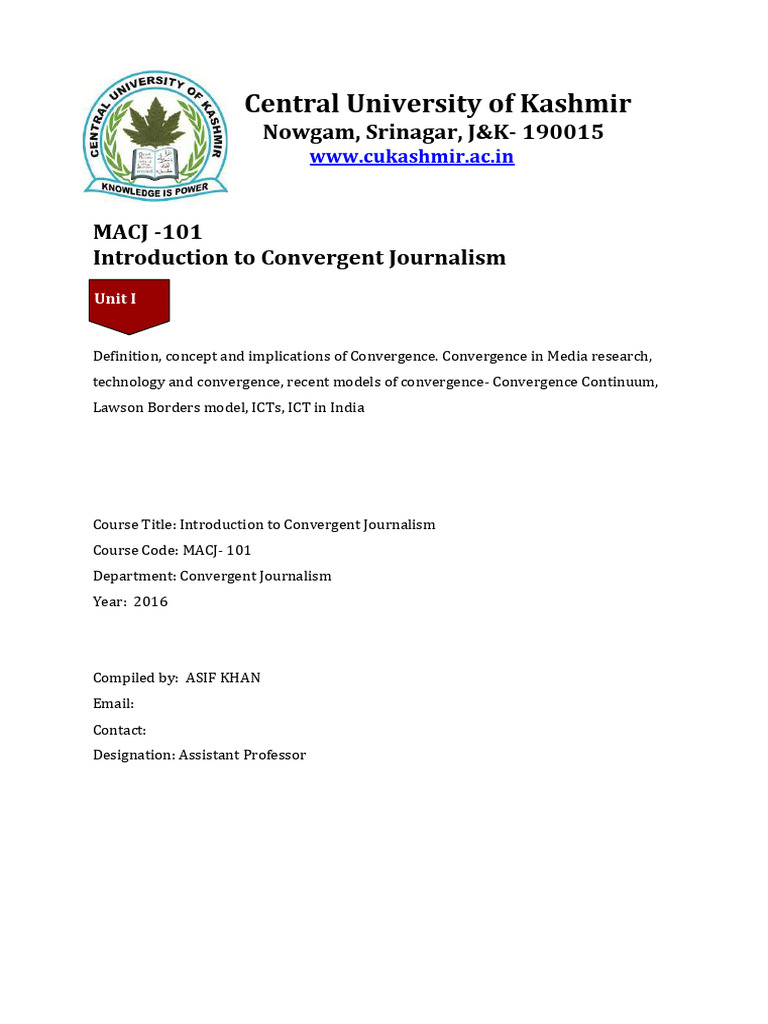 must narrow our subject of inquiry further to that of convergence journalism. Criado