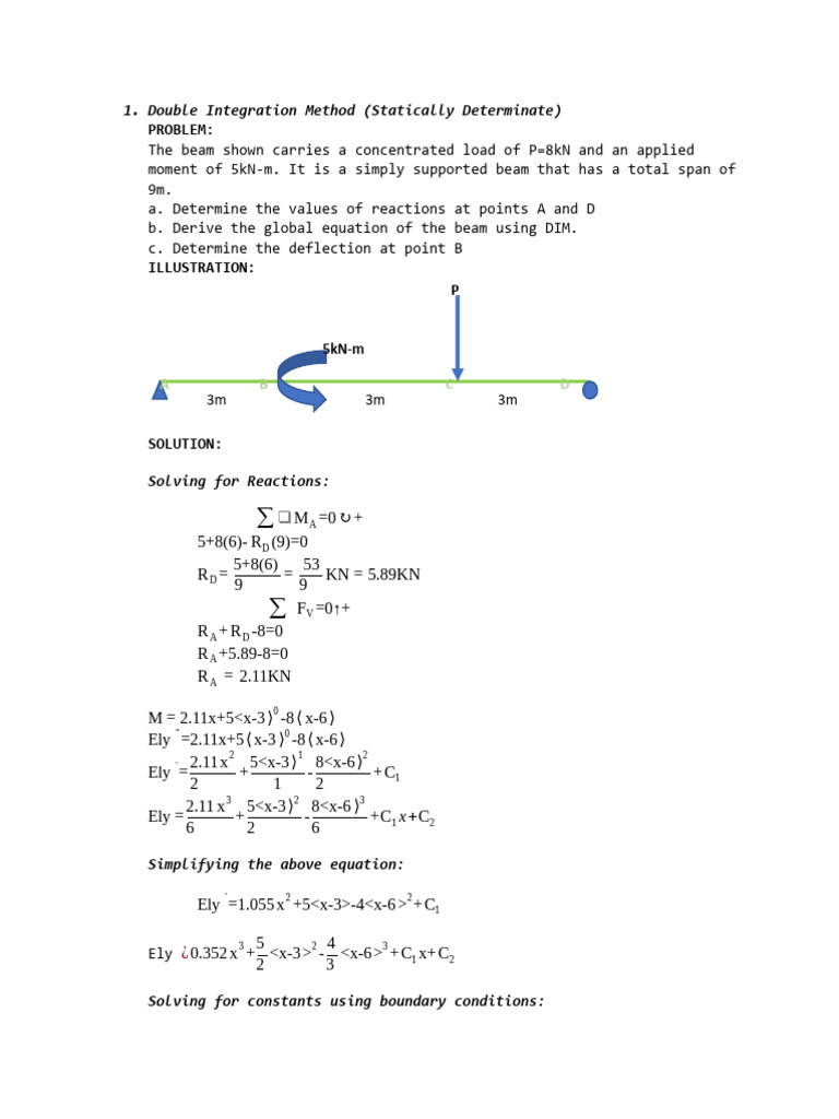 moment of 5kN-m. It is a simply supported beam that has a total span of