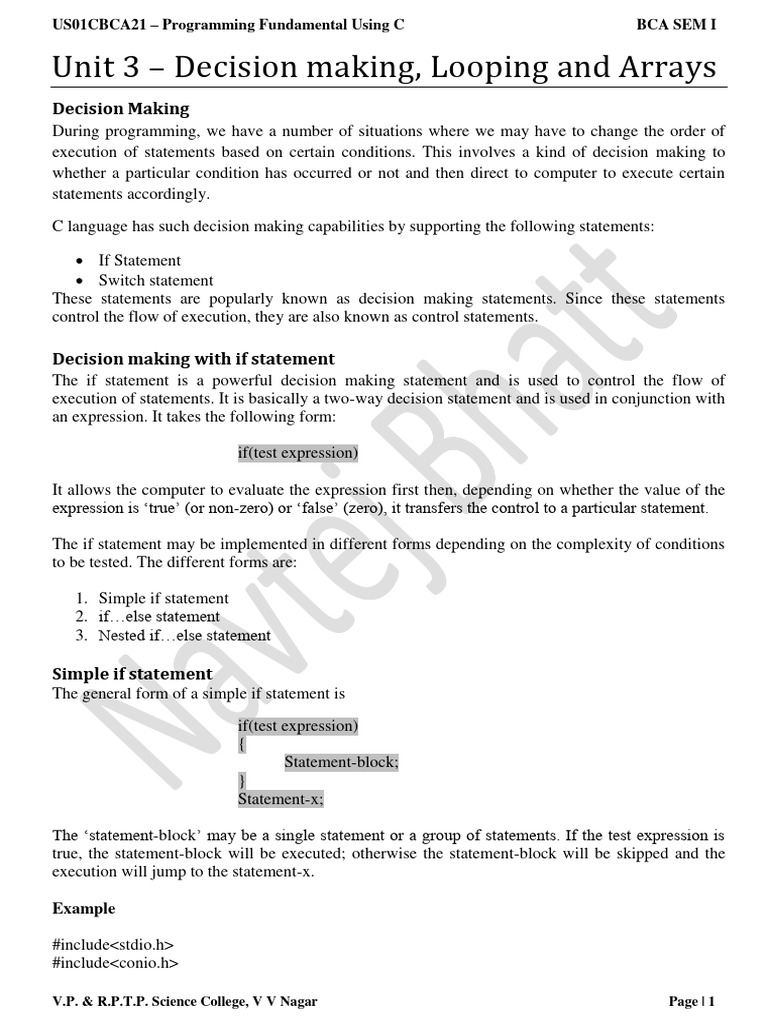expression is ‘true’ (or non-zero) or ‘false’ (zero), it transfers the control to a particular statement.