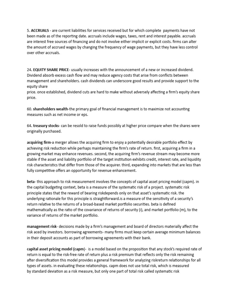 64. treasury stocks- can be resold to raise funds possibly at higher price compare when the shares were