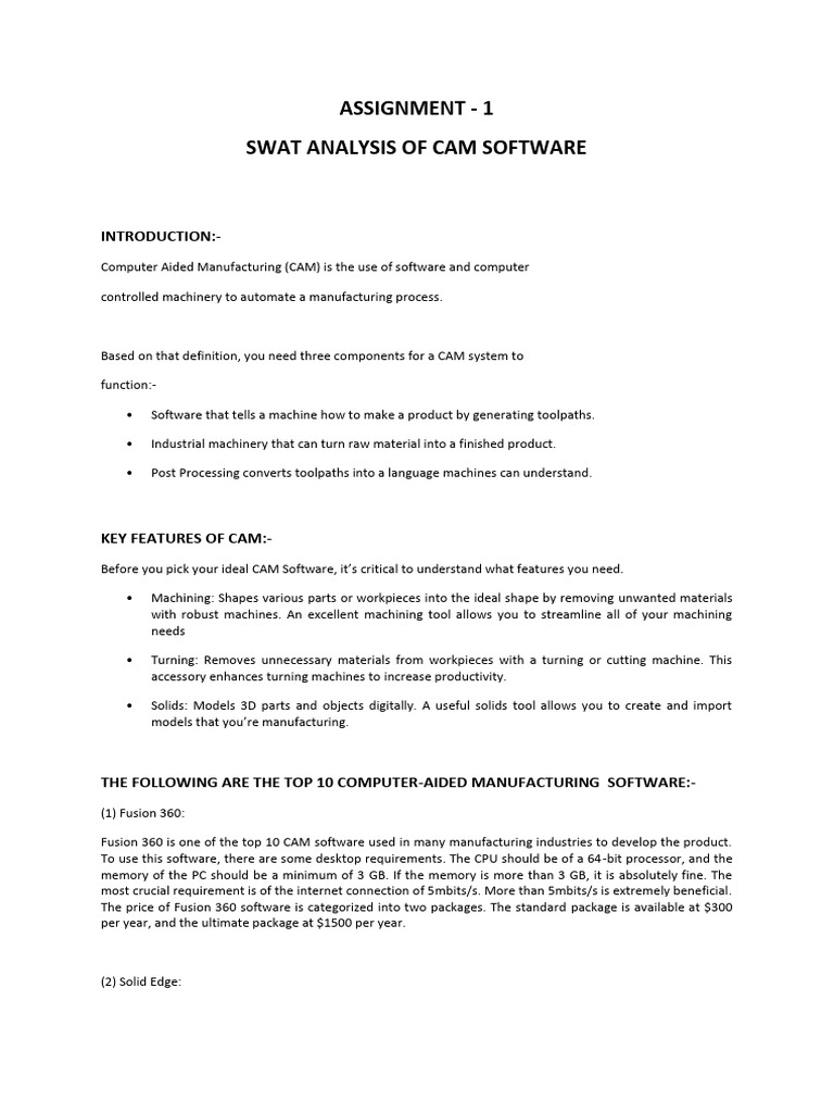 SWAT ANALYSIS OF CAM SOFTWARE