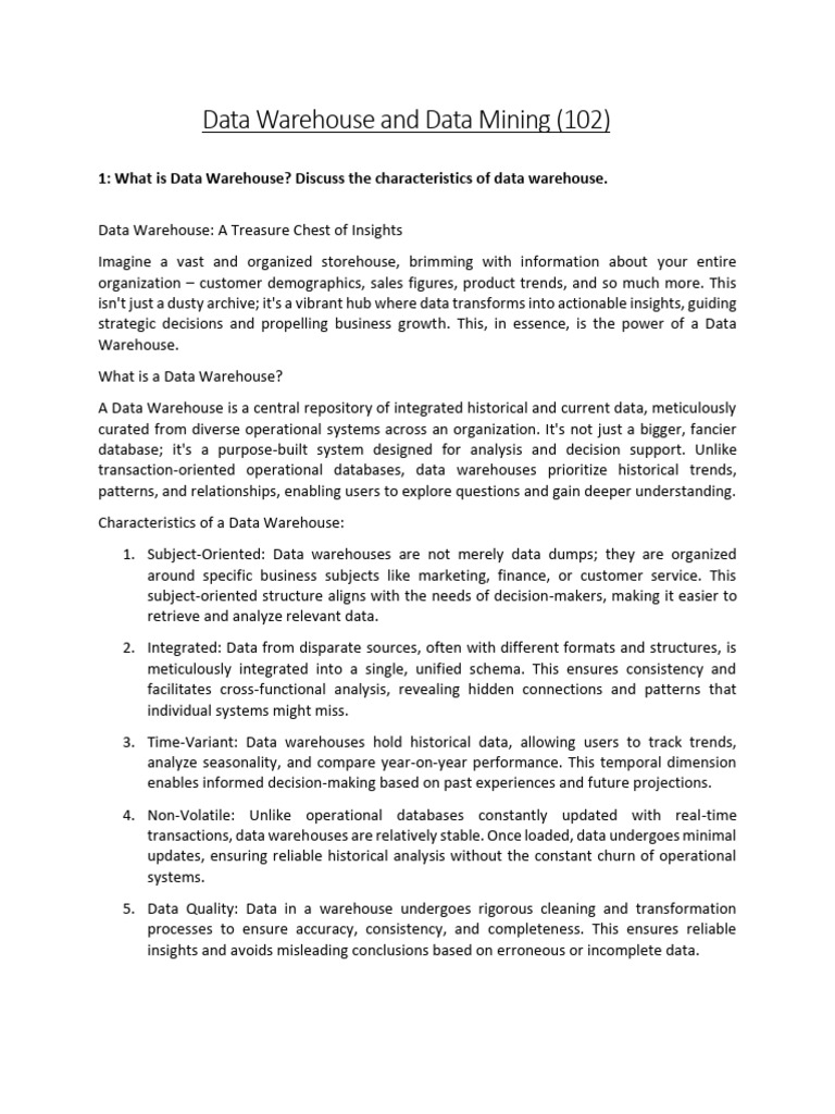1: What is Data Warehouse? Discuss the characteristics of data warehouse.