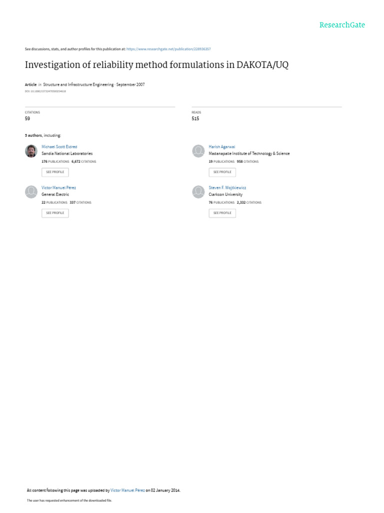 ratories has developed a suite of algorithmic capabilities known as DAKOTA/UQ [Wojtkiewicz et al., 2001]. This package
