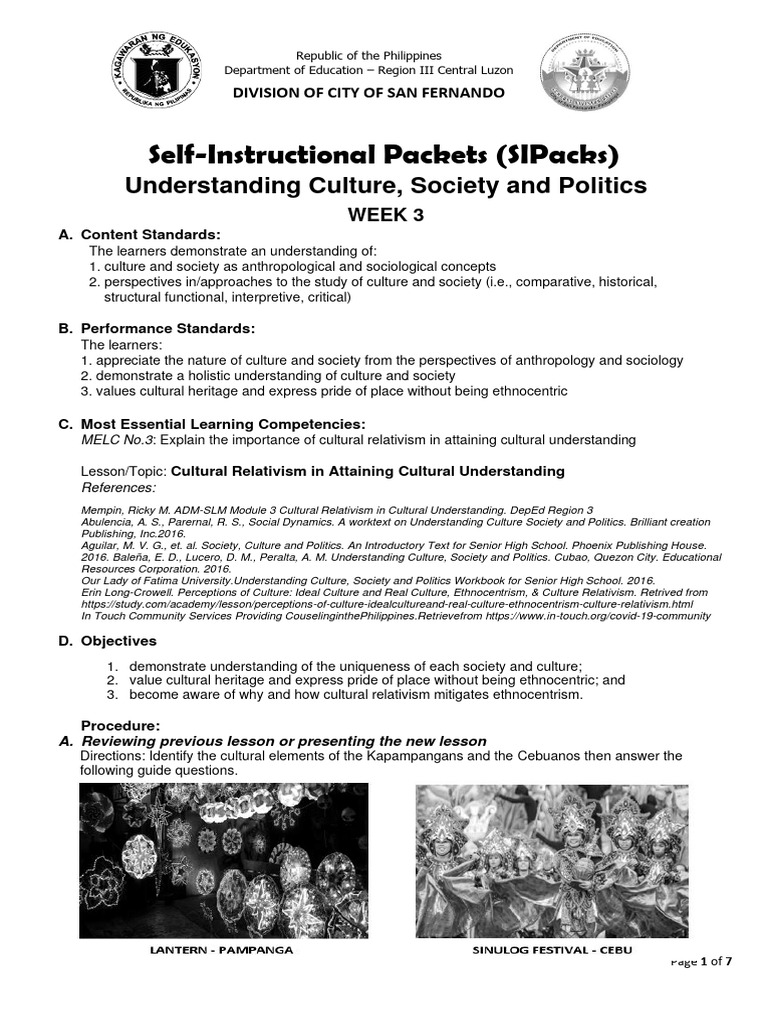 MELC No.3: Explain the importance of cultural relativism in attaining cultural understanding