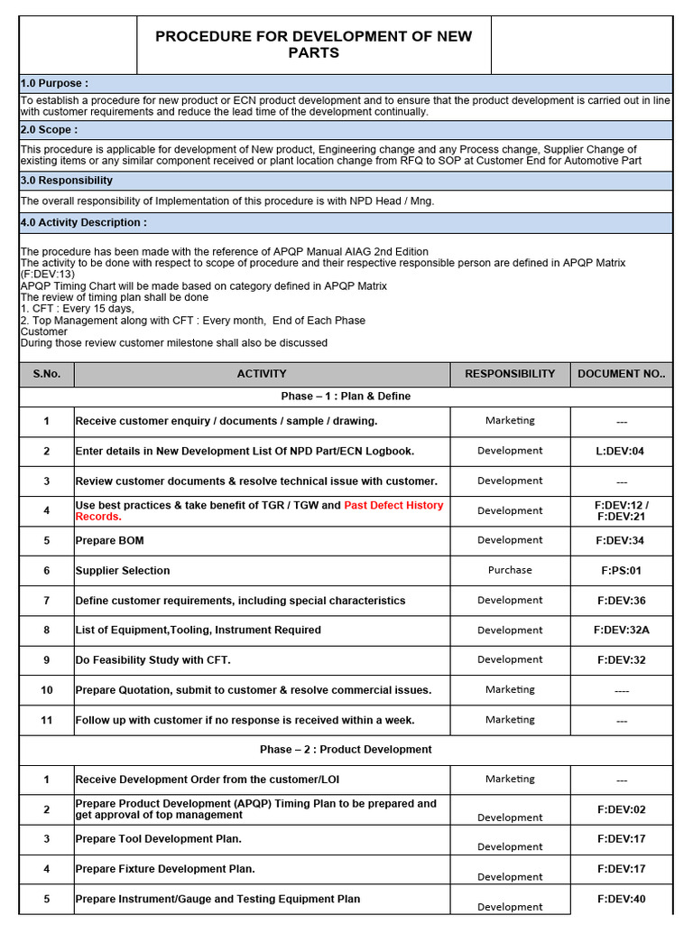 The procedure has been made with the reference of APQP Manual AIAG 2nd Edition