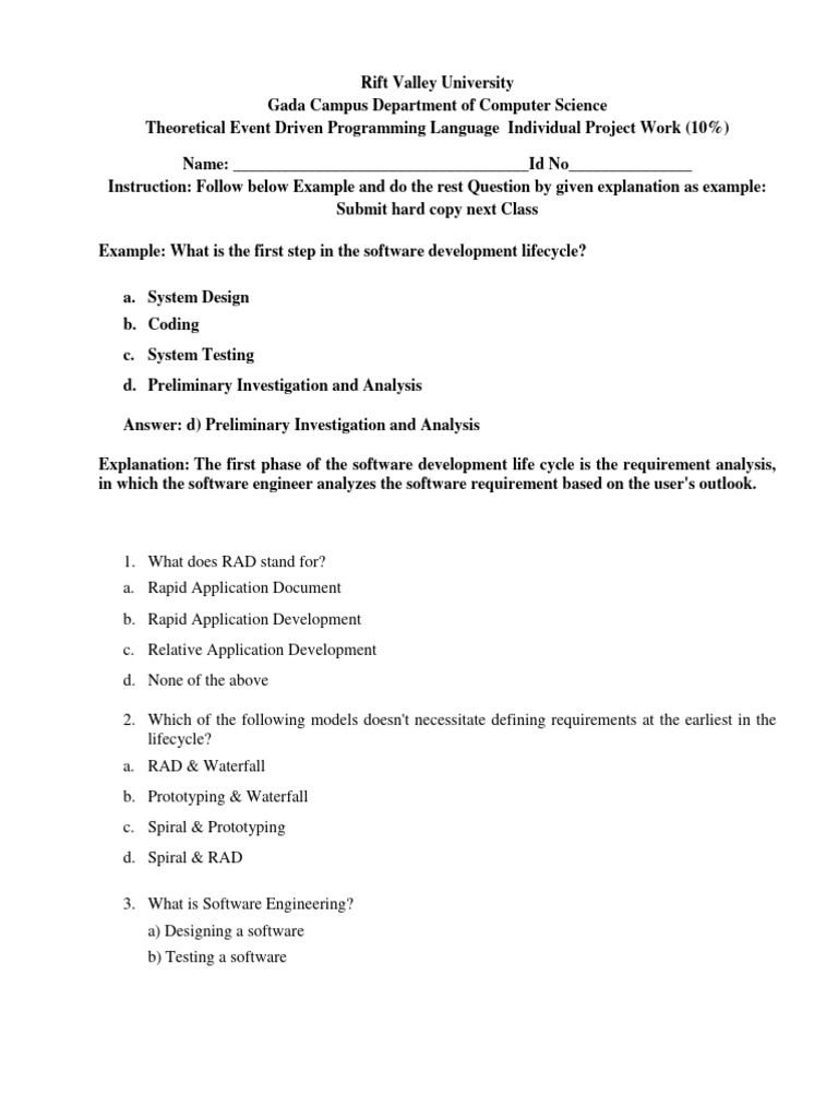 2. Which of the following models doesn't necessitate defining requirements at the earliest in the