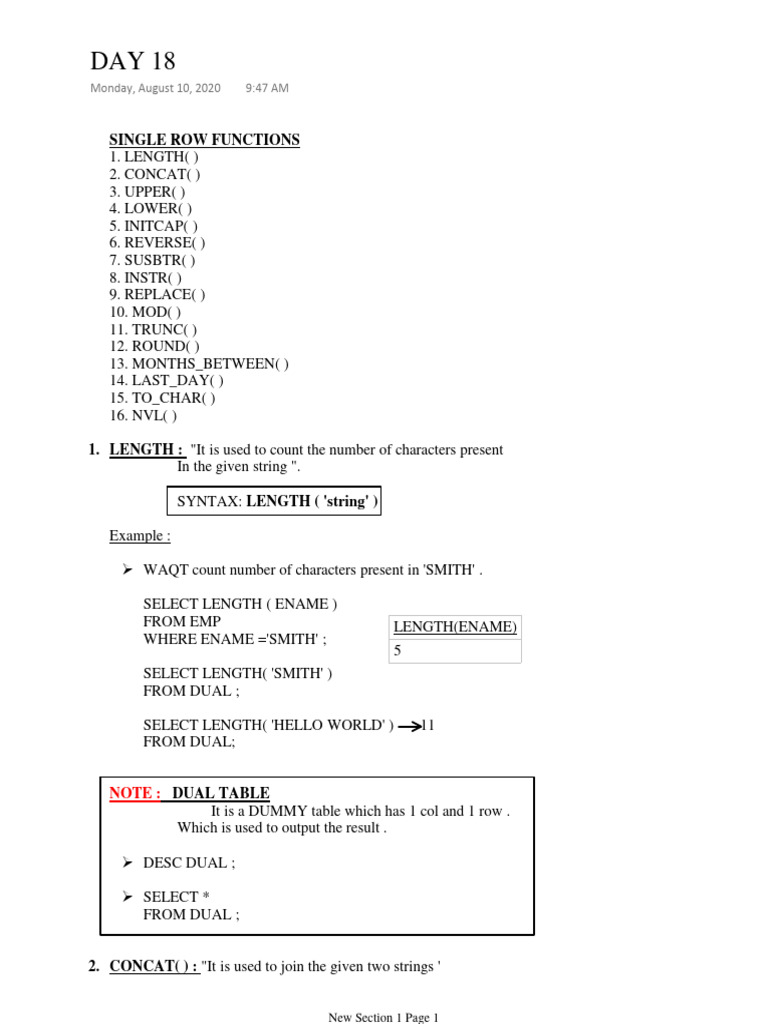 15. TO_CHAR( ) :"It is used to convert the given date into String format based on the Model given "