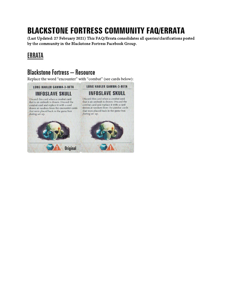 BLACKSTONE FORTRESS COMMUNITY FAQ/ERRATA