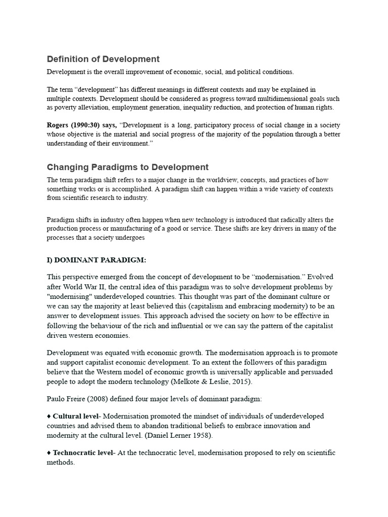 paradigm of being very Western-centric, overlooking any alternative route to development.