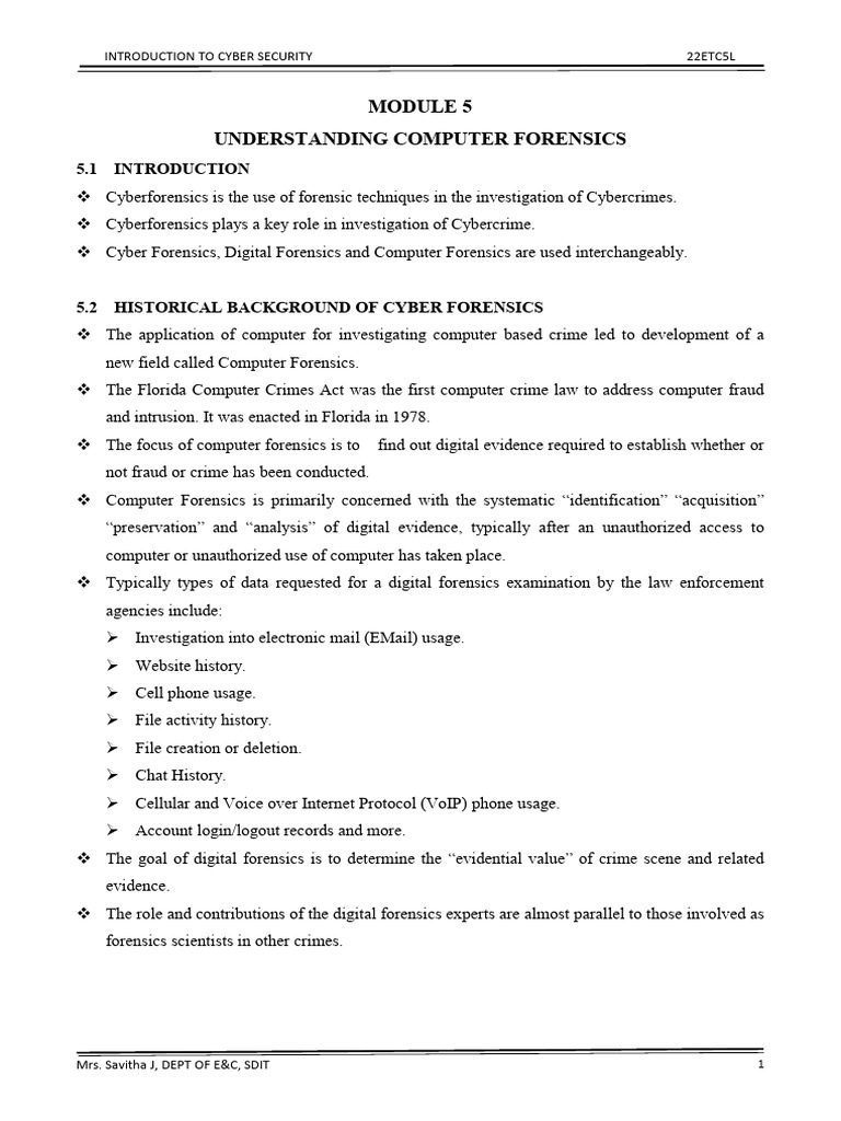 5.2 HISTORICAL BACKGROUND OF CYBER FORENSICS