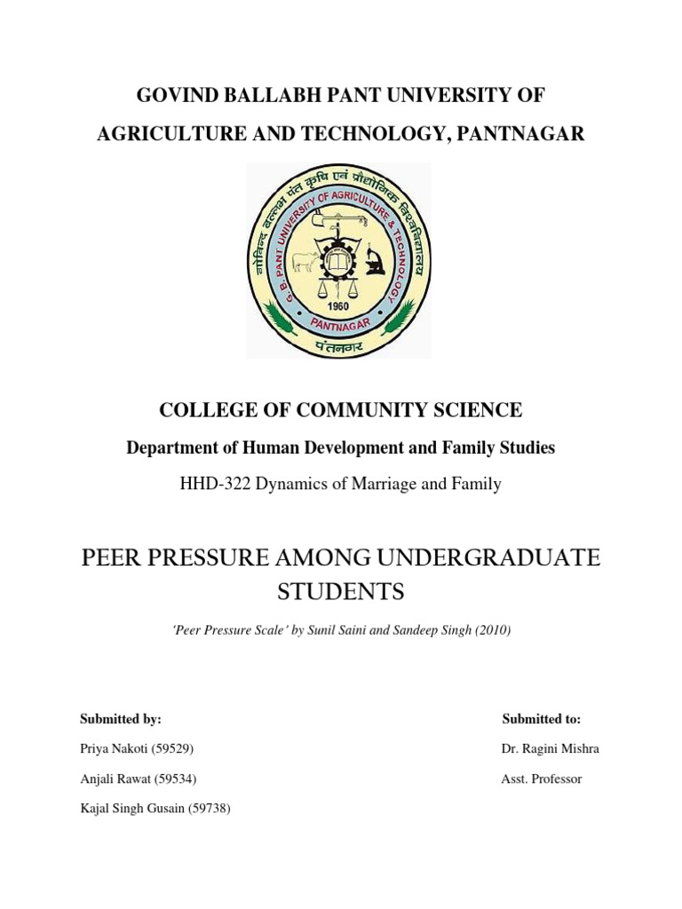 1. Peer Pressure among Undergraduate Students: A Study on Tezpur University by Miss