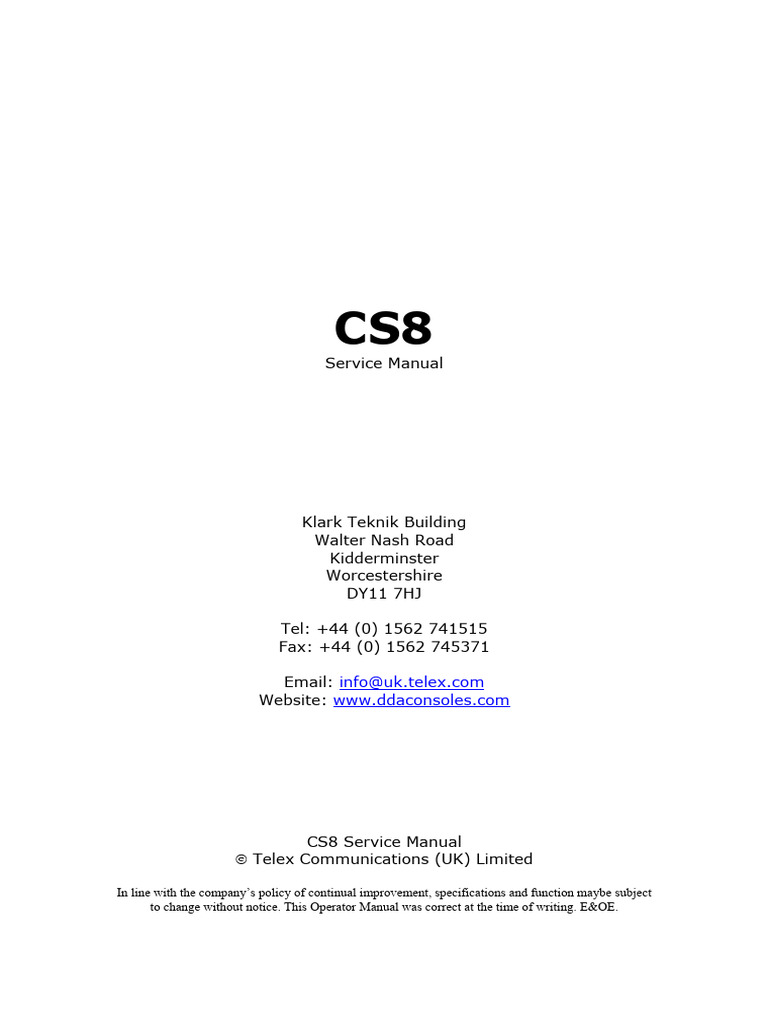 to change without notice. This Operator Manual was correct at the time of writing. E&OE.