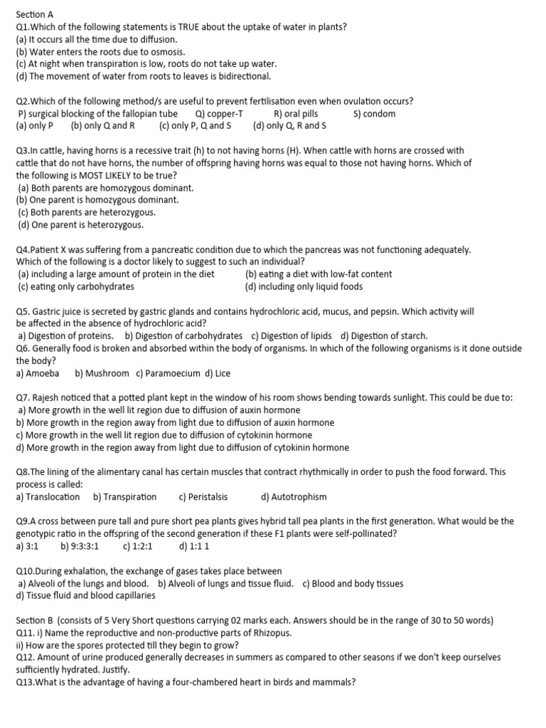 Q14. Ravi cultivated mustard, a plant with bisexual flowers, on his farm. His plants were diseased due to a gene defect and