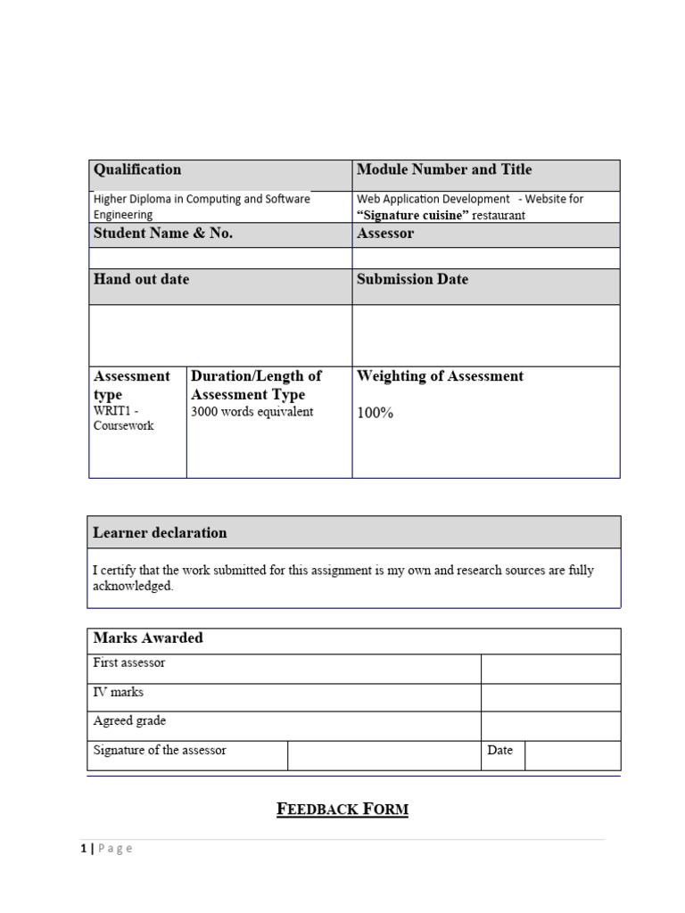 Module: Web Application Development - Website for “Signature cuisine” restaurant
