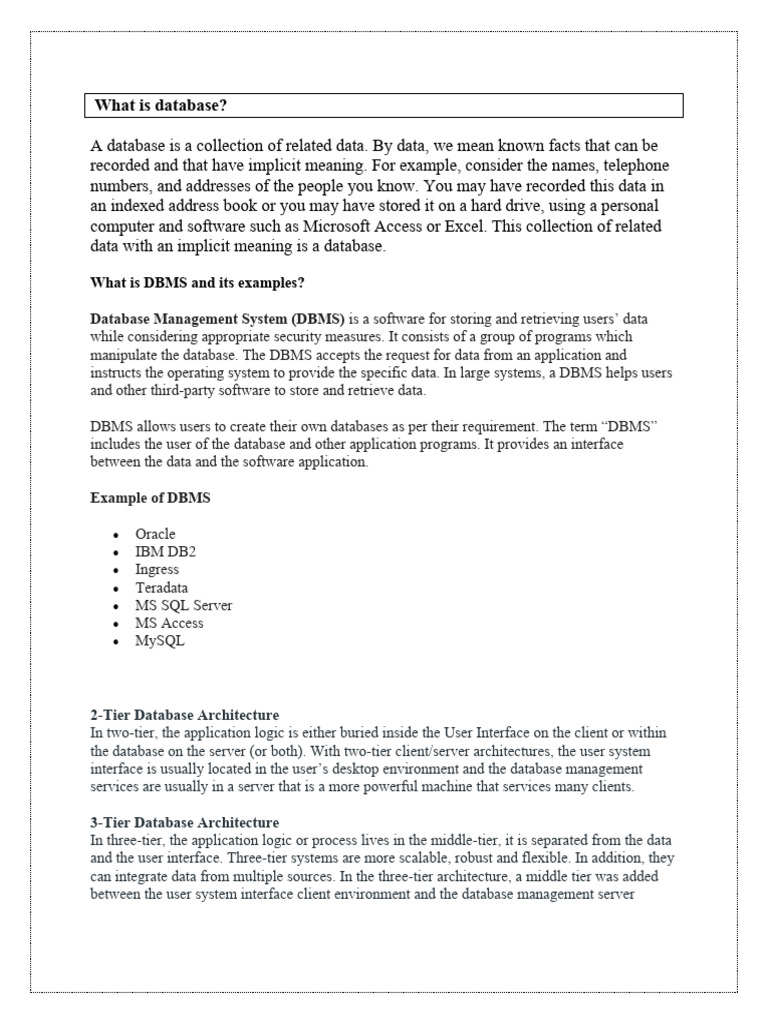 Database Management System (DBMS) is a software for storing and retrieving users’ data