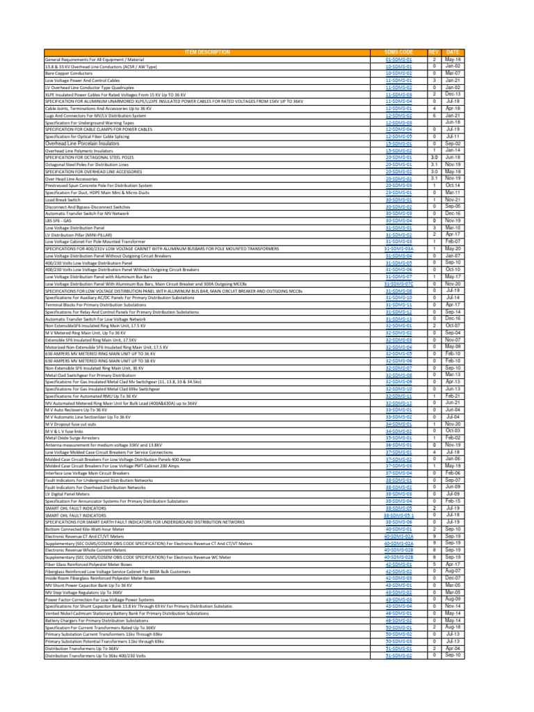 Specifications For Gas Insulated Metal Clad Mv Switchgear (11, 13.8, 33 & 34.5kv) 32-SDMS-09 0 Apr-13