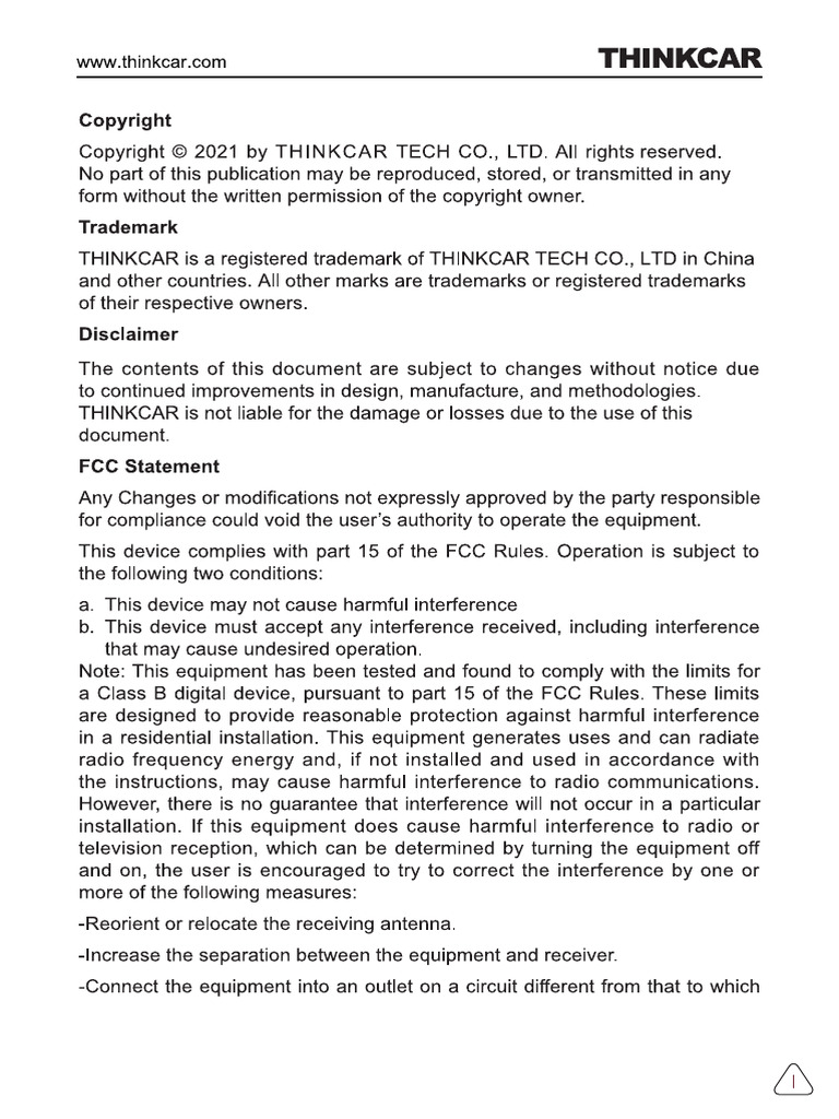 Copyright © 2021 by THINKCAR TECH CO., LTD. All rights reserved.