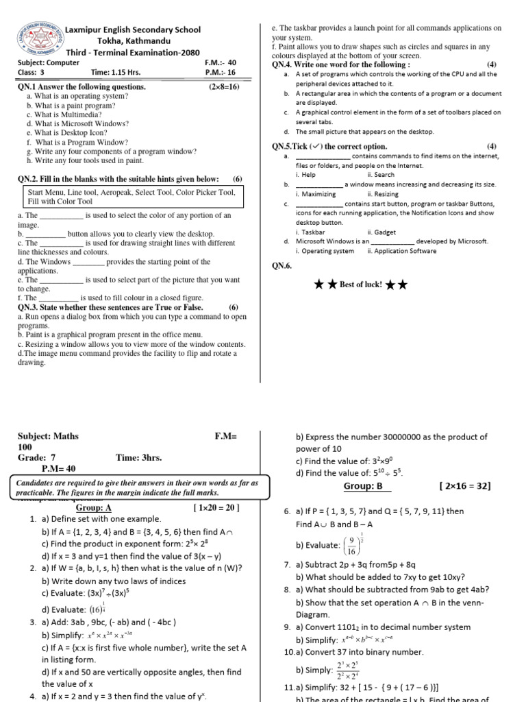Third - Terminal Examination-2080 colours displayed at the bottom of your screen.