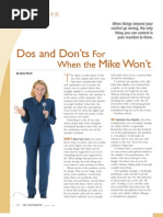 Bob Newhart talking about sub-standard performances one night. He admitted he had them. In fact, he said that any comic who said he never had an off night was not telling the truth. I remember a lecture I delivered in a movie theater. I had been working to the crowd in the back of the hall and the balcony. It occurred to me I should pay some attention to the people in the first few rows. I glanced down and the entire front row was catching a nap. Many comedians will tell you, almost fondly, of their disastrous shows. One thing they wont tell you, though, is how they gave up on those shows. The pros dont. As mentioned earlier, they work harder. You will have many lectures that go through the roof. Unfortunately, youll also have a few that just sit there. Learn from the comics and give each performance your all. Determine in your own mind that if you have an off night, it will really be the audiences fault not yours.