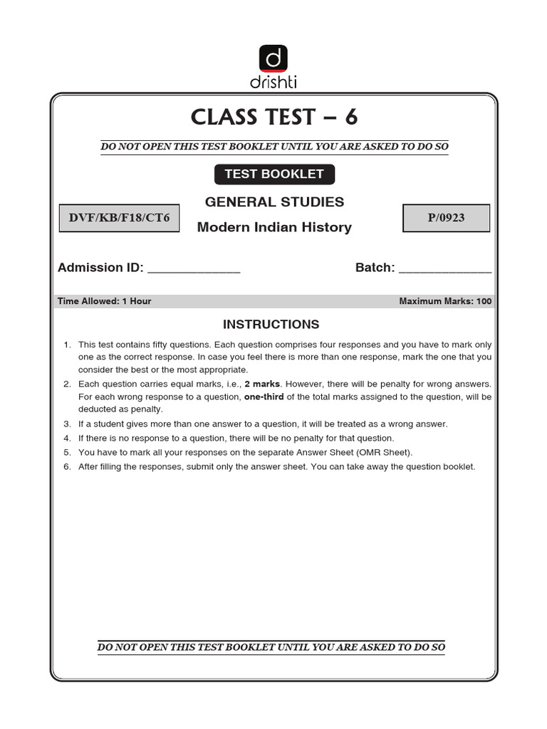 6. After filling the responses, submit only the answer sheet. You can take away the question booklet.