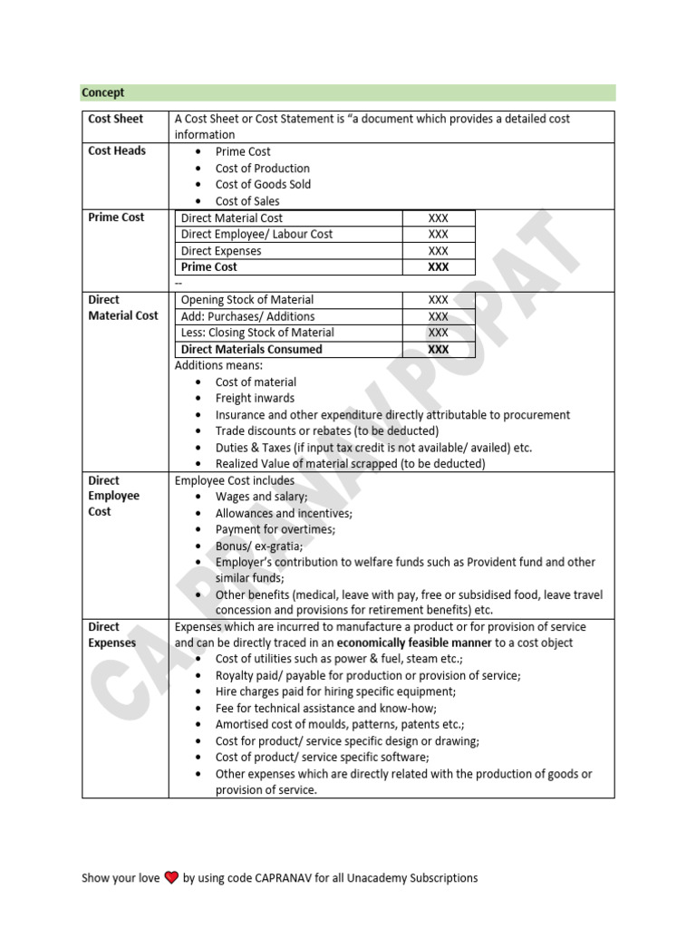 Cost Sheet A Cost Sheet or Cost Statement is “a document which provides a detailed cost