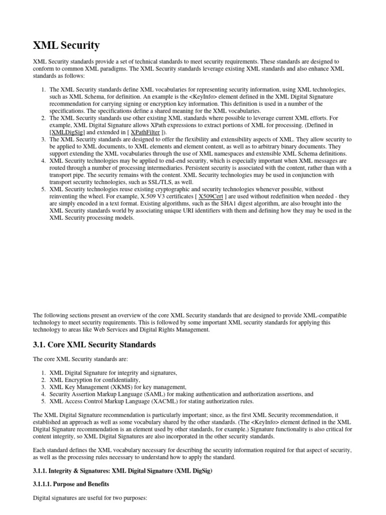 In addition, the XML Signature recommendation supports the application of multiple XML Signatures to an XML document or