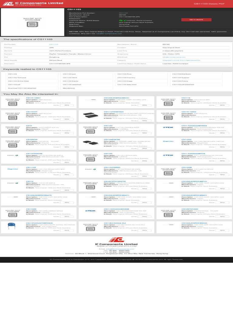 CS11103 100% New Original 600pcs in Stock, Find CS11103 Price, Stock, datasheet at IC Components Ltd Online, buy CS11103 with warrantied. 100% guarantee