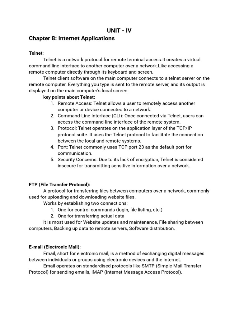 key points about Telnet: