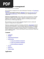 Performance management is the process of creating a work environment or setting in which people are enabled to perform to the best of their abilities. Performance management is a whole work system that begins when a job is defined as needed. It ends when an employee leaves your organization. Many writers and consultants are using the term performance management as a substitution for the traditional appraisal system. I encourage you to think of the term in this broader work system context. A performance management system includes the following actions. * Develop clear job descriptions. * Select appropriate people with an appropriate selection process. * Negotiate requirements and accomplishment-based performance standards, outcomes, and measures. * Provide effective orientation, education, and training.