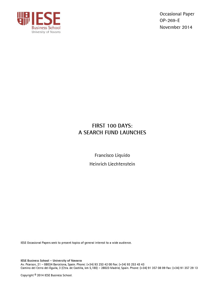 investors. The IESE Search Fund Center asked me to write this note on my experience