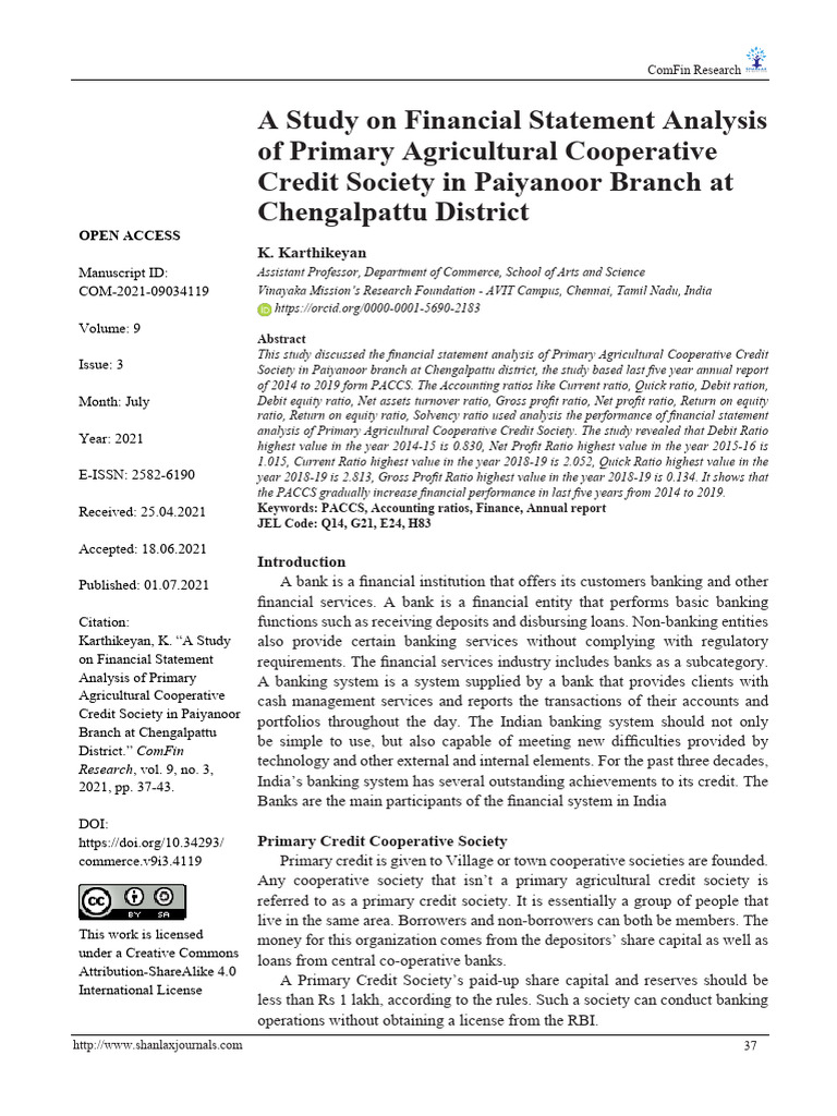 Credit Society Ltd show that the Cooperative Sathyamoorthi, C., et al. “An Analysis of the Financial