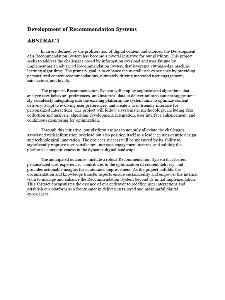 of a Recommendation System has become a pivotal initiative for our platform. This project
