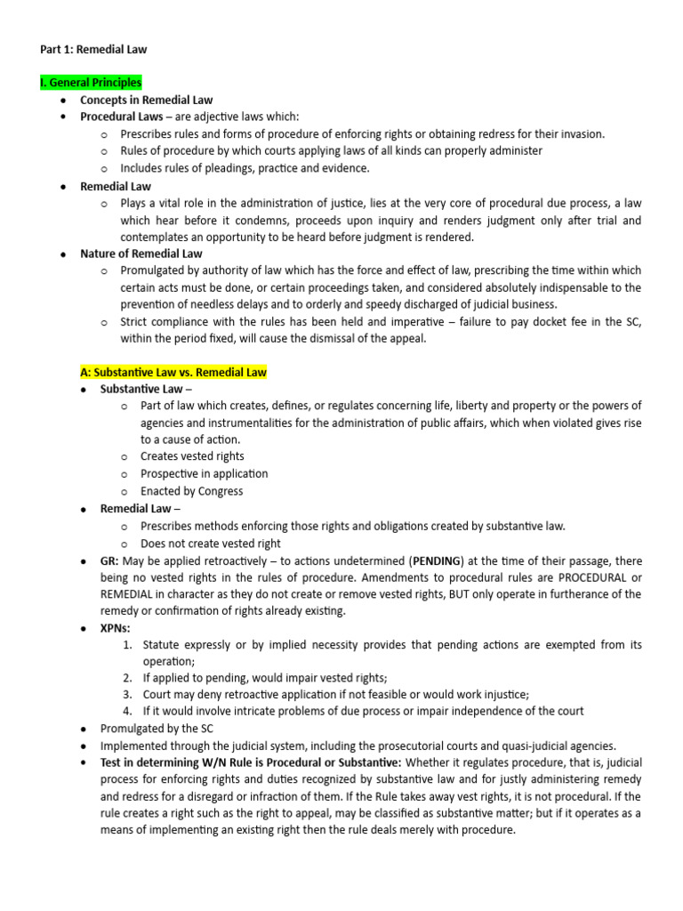 and redress for a disregard or infraction of them. If the Rule takes away vest rights, it is not procedural. If the