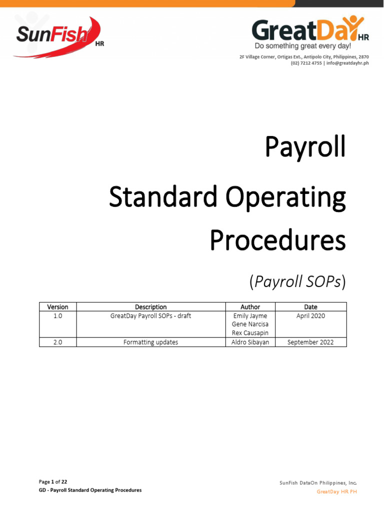 GD - Payroll Standard Operating Procedures GreatDay HR PH