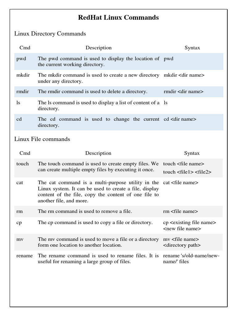 RedHat Linux Commands